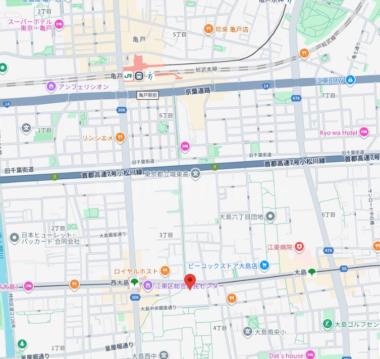 都営新宿線/西大島駅 徒歩4分 JR総武線/亀戸駅 徒歩14分 |